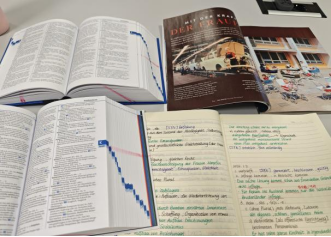 在开学前的语言班上,我的同学来自匈牙利、波兰、巴西、法国……课堂讨论时,我常常在脑海中反复斟酌句子,怕语法有误,怕用词不当,结果往往是错过了发言的时机,另一位法国同学说她也有同样的焦虑,好在边上的一位德国同学一直都在鼓励我们,慢慢地,当老师提问的时候,我会第一个举手,为自己争取到发言的机会。我开始尝试,从简单地回答到主动提问,从小组讨论到课堂陈述。我发现,当我专注于“表达想法”本身,而非“完美无误”时,交流反而顺畅了。错误在真实的对话中被纠正,自信在每一次开口后增长。