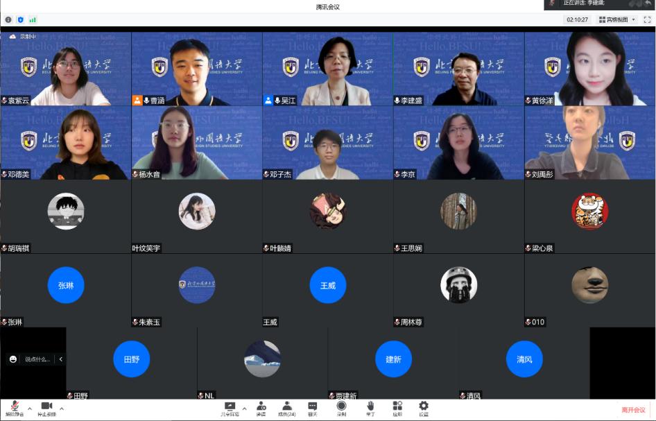 两项国家级“大学生创新训练项目”——《中轴线的智慧》与《跨越中轴线》正是德院学子近年来践行用外语讲好中国故事的生动案例。报告会开场,吴江代表学院对李建盛给与项目建设提供学术指导表示诚挚的感谢。