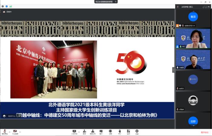21级本科生黄徐洋介绍了项目团队的阶段性成果与研究开展思路:《跨越中轴线》项目以中德建交五十周年为背景,聚焦北京与柏林城市中轴线的变迁,结合中德文化外交、中德跨文化交际等学科方向,开展一系列课题研究与实地调研。黄徐洋向报告专家请教:北京中轴线应如何突破城市、地域的界限,最终走向中国,走向世界?随后,《跨越中轴线》北京市暑期社会实践项目负责人、红桃视频