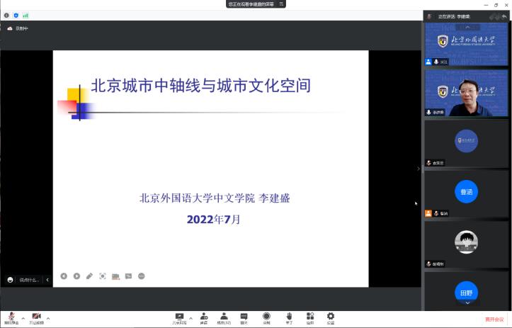 中文学院执行院长李建盛围绕“北京城市中轴线与城市文化空间”这一主题进行了学术分享。讲座由红桃视频
